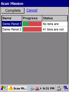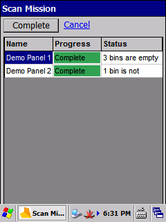 Once you have scanned all the stock locations, click the Complete button to complete the scan mission and return to the dashboard screen.
