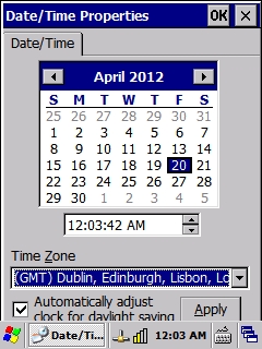 Ensure that the correct date, time and time zone are selected, and that 'Automatically adjust clock for daylight saving' is checked. Tap the Apply button.