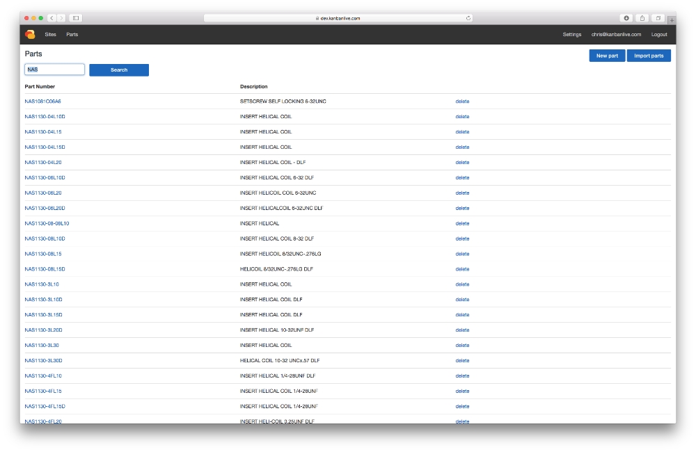 To search for a part click the Parts item on the top toolbar, enter the part number in the search box and click the Search button.